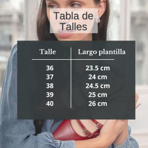 * La tabla de talles corresponde a la medida de la plantilla. En caso de que tengas alguna duda, por favor comunicate por whatsapp o instagram y te asesoramos!